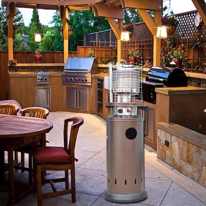 Газовый обогреватель WWT (ВВТ) 13H Stainless steel – это усовершенствованная модель, отличающаяся высотой 135 см, что позволяет направлять тепло напрямую на сидящего человека. Модель предназначенная для установки на летних верандах кафе и ресторанов, а также на других открытых площадках. В качестве топлива используется баллонный газ пропан-бутан, подача которого прекращается при наклоне или опрокидывании.
